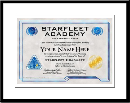 Nu kan du få ett bevis på att du avlagt examen vid Stjärnflottans akademi utan att behöva göra något för det (utom att betala en liten slant).