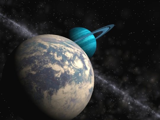 En målning av Saturnus avbildade den från månen Rhea. Målningen fanns i flera logier på USS Enterprise-D och i en korridor på Stjärnflottans högkvarter.