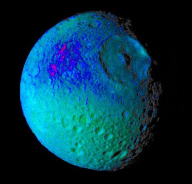 Mimas är en måne som kretsar kring Saturnus. Med en diameter på 396 km är Mimas den minsta måne som är sfärisk på grund av sin egen gravitation.