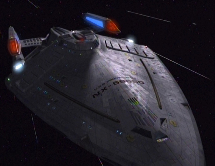 Skeppet skadades under borgattacken år 2381 vid försvaret av Vulcan. (Star Trek: Destiny) |