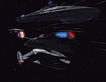 Akira-klass skepp. Skeppet tog sedan och förstörde en