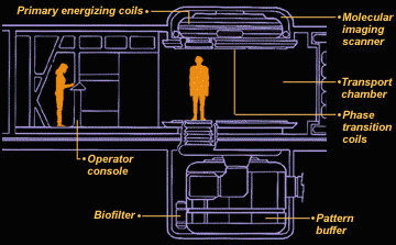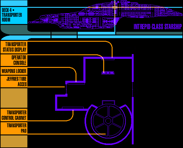 (eng. Transporter Room) Transportören konverterar kortvarigt ett föremål eller person till energi, skickar den energin till en annan plats och tar sen och sätter ihop ämnet till dess original form vilket underlättar vid transporter av gods och människor även om denna apparat ibland har en viss förmåga att gå sönder när den inte får gå sönder. Detta leder till att man ibland föredrar att använda rymdskyttlar till känsliga uppgifter så som upphämtning av farligt gods.