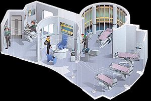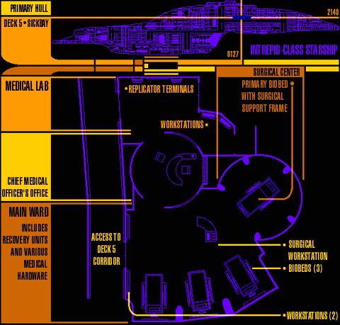 (eng. Sickbay) Medicinsk vårdenhet ombord på Federationens skepp. Sjukvårdsavdelningen på Voyager innehåller flera sjukvårdssänger, ett avancerat operationsbord, laboratorium, en EMH (Emergency Medical Hologram), som är en holografisk doktor, och andra faciliteter. I normala fall har skeppet en stab av mänsklig personal men dessa dödades i pilotavsnittet vilket gjorde att EMH var tvunget att fungera som skeppets huvudläkare under mycket längre tid än avsett var. Trots detta gjorde EMH livsräddande insatser för många av besättningen och för flera av dem åtskilliga gånger. Inte så illa för ett datorprogram för nödbruk. Till slut räknade man EMH som en del av besättningen vilket är det bästa sättet att tacka ett datorprogram för lång och trogen tjänst.