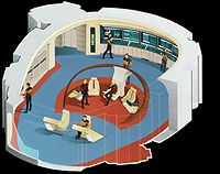 Bakom kommandoområdet finns en upphöjd plattform där den taktiska stationen finns. På denna plattform finns också fem arbetsstationer, som normalt är konfigurerade som "Science I", "Science II", "Mission Operations (OPS)", "Environment" och "Engineering".