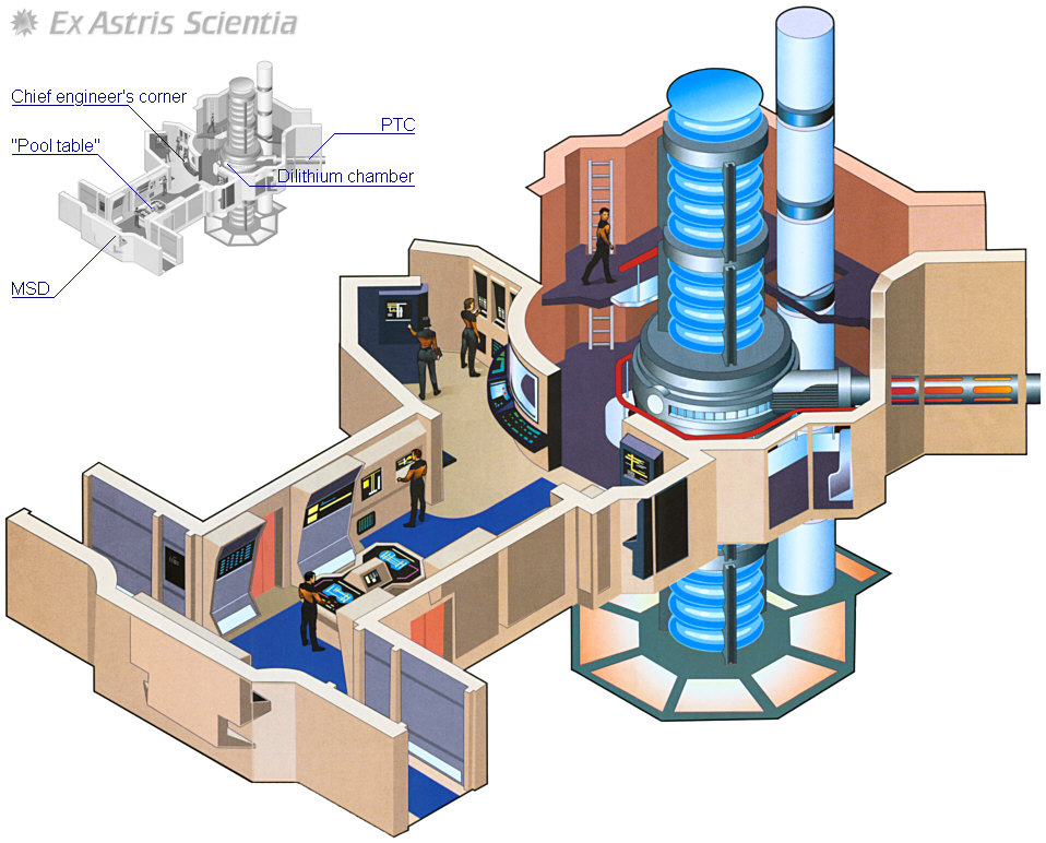 Huvudmaskinrummet ligger på däck 36 och är huvudkontrollen för skeppets warp- och impulsemotorer och andra tekniska system.