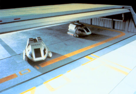 (eng. Shuttlebay)Start och landningsplatser för skeppets rymdskyttlar. Det finns tre skyttelhangarer. En huvudhangar i tefatsdelen samt två stycken (skyttelhangar 2 och skyttelhangar 3) i stridsdelen. Skyttelhangarerna består av ett stort rum där skyttlarna startar och landar samt förvaras. Den väggen som är mot rymden kan öppnas. Där kan man även ha ett kraftfält så att inte de som finns inne i hangaren sugs ut. Detta kan stängas av en kort stund när skyttlar startar och landar.