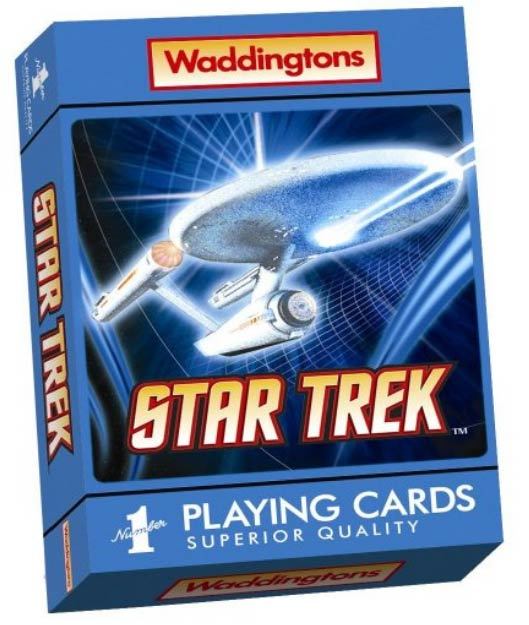 "Oavsett om spelet är Fizzbin* med Spock på Sigma Iotia II eller poker med kommendörkapten Riker ombord på Enterprise-D, så finns allt du behöver i Star Trek Classic Playing Cards!" (ur produktbeskrivningen)