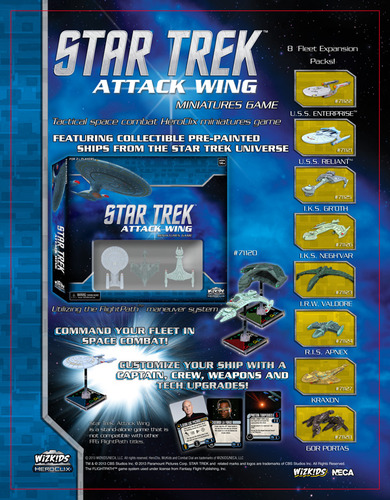 Star Trek: Attack Wing är ett taktiskt rymdspel som spelas med miniatyrer (förmålade rymdskepp från Star Trek-universumet). Spelarna deltar i utforskning och strider, färdas över rymdkartor utlagda på ett bord eller golv. Som befälhavare kan spelarna anpassa, uppgradera och tilldela sina flottor berömda besättningsmän och kvinnor. Skeppen representerar mäktiga eller betydande imperier och styrkor. Med spelet följer statistiska data, olika speciella förmågor och stridsskivor för unika skeppsmanövrer.