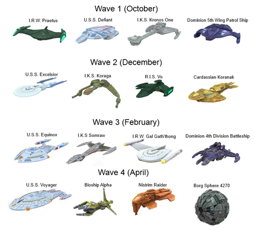 Utgivaren släpper regelbundet s.k. Waves. För närvarande finns Wave 0-4 (10 stycken är planerade fram till oktober 2014). Varje Wave innehåller 4-8 rymdskeppsminiatyrer.