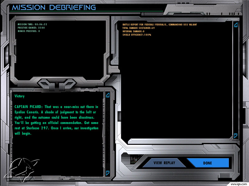 Star Trek: Starfleet Command III innehåller en utmärkt introduktion till spelet ledd av kommendör Jean-Luc Picard (Patrick Stewart).