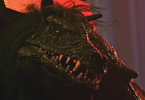 Utomjordingen Trelane hade ett uppstoppat Alfa 177-hundjurshuvud i sitt palats.