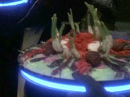 När kommendör William T Riker 2369 hölls fången och utsattes för neural manipulering av talonierna, ingick en skål med taggig lobfening i en skapad illusion.