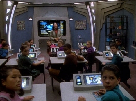 USS Enterprise-D var ett rymdskepp, som utöver besättningen, inhyste familjer. Av den anledningen var det nödvändigt med skolor för barnen, där de bl.a fick utbildning i litteratur, matematik, konst och botanik. Flera lärare fanns ombord på Enterprise, som fröken Kyle. Vissa av klassrummen hade en spionspegel som gjorde det möjligt för personer utanför spegeln att se in.