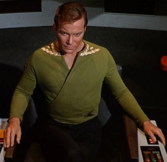 Kommendör James T Kirk sågs ofta i två gröna varianter av tunikan. Charles Evans bar en beige version (se översta bilden i detta avsnitt).